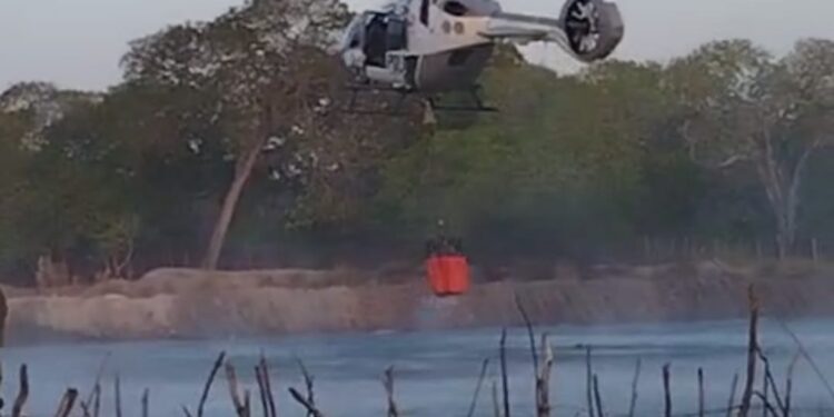 Incêndios em Aracati (CE): Equipes de emergência combatem focos de fogo com uso de helicóptero