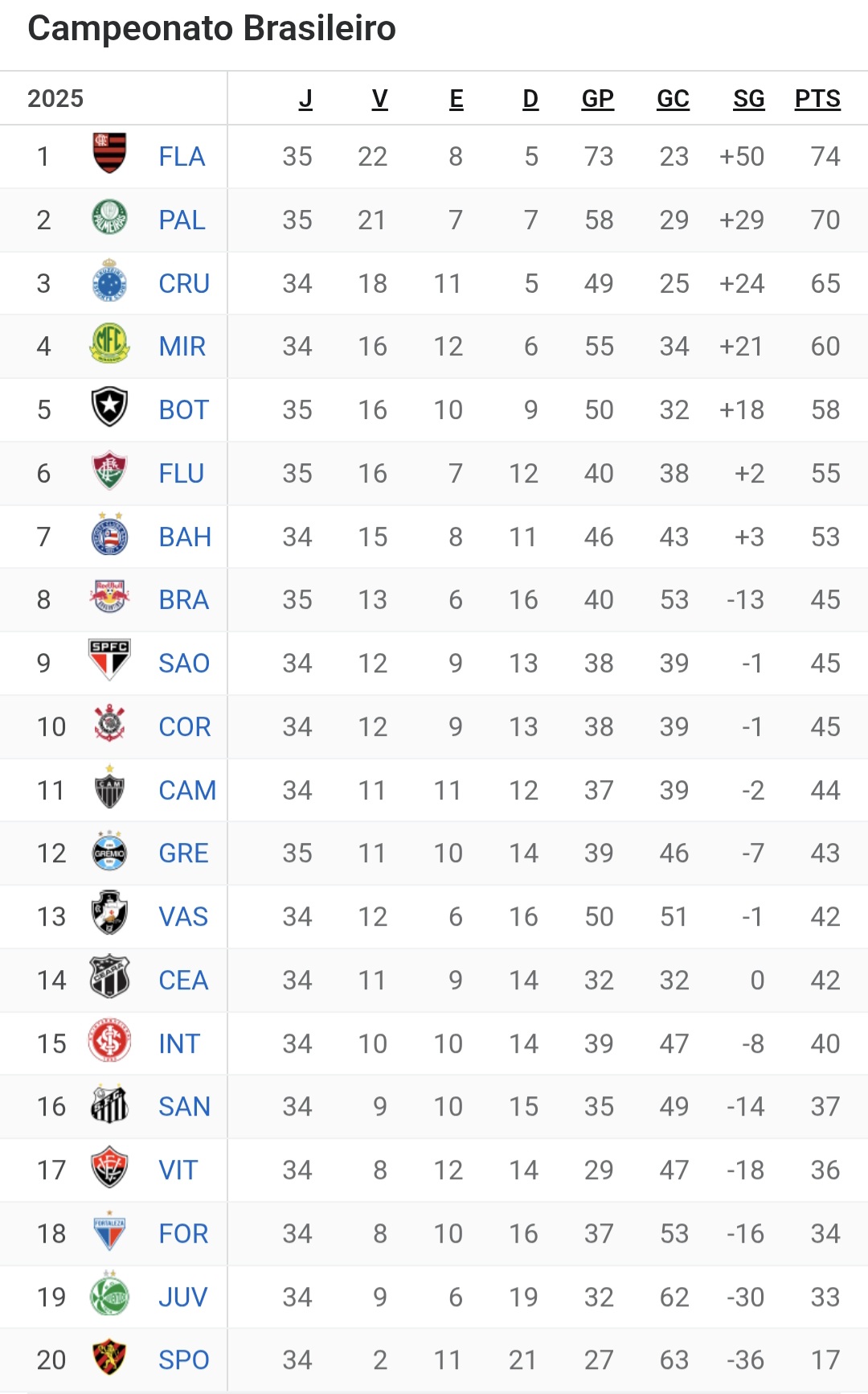 Com 74 pontos, a nova matemática na Gávea é simples: vencer o Atlético-MG, fora de casa, na terça-feira (25), véspera da viagem para a final continental e torcer para o Grêmio, que estará jogando em seu terreiro, dar uma ajuda de custo. Se o Palmeiras não vencer em Porto Alegre, a taça volta para o Rio, e a final de sábado se tornaria um jogo de “seis estrelas” (duas do Brasileirão, três da Libertadores, e a última pela paz mundial).