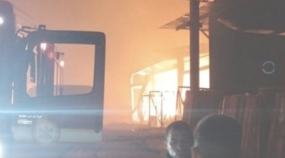 Um incêndio de grandes proporções atingiu uma fábrica de esquadrias, que operava com a produção de portas de madeira e janelas de alumínio, na zona rural de Campina Grande, na Paraíba.