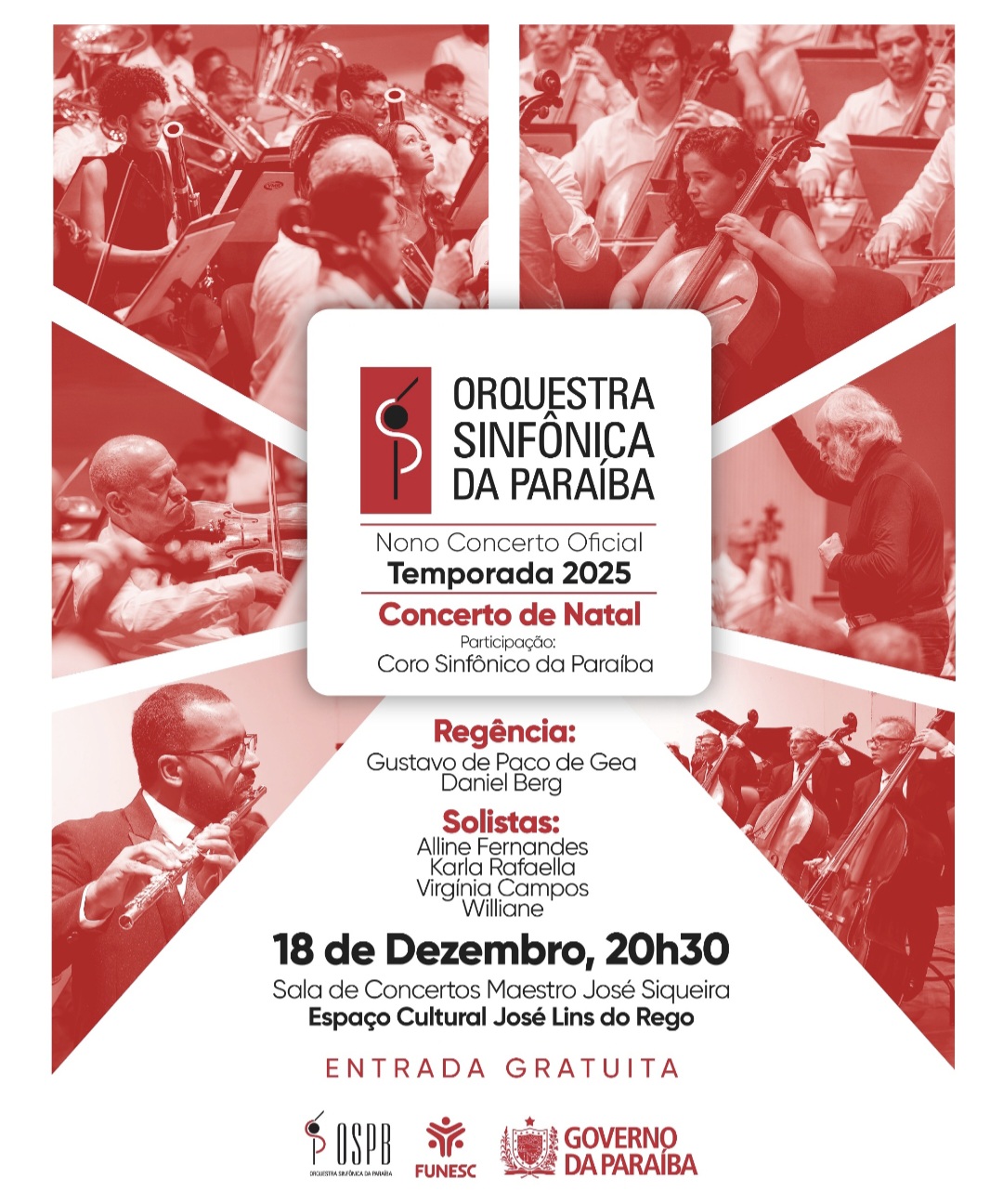 A Orquestra Sinfônica da Paraíba (OSPB) finaliza sua temporada de 2025 com o tradicional Concerto de Natal, que acontece nesta quinta-feira, 18 de dezembro, às 20h30. O evento, sediado na Sala de Concertos Maestro José Siqueira, no Espaço Cultural, contará com a participação especial do Coro Sinfônico da Paraíba e de quatro solistas: Alline Fernandes, Karla Rafaella, Williane e Virginia Campos.