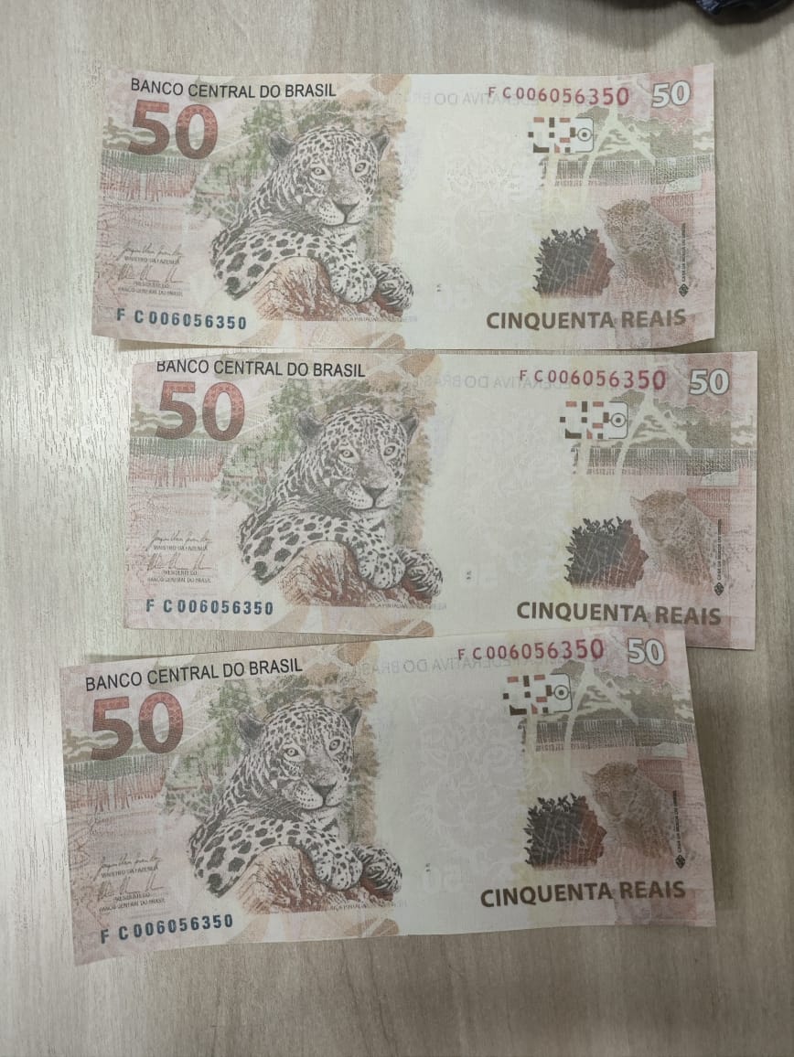 A embalagem foi aberta pelo suspeito na presença dos policiais. Após a constatação da existência de cédulas falsas em seu interior, o homem recebeu voz de prisão e foi conduzido à delegacia de Polícia Federal. No pacote, foram encontradas três cédulas falsas de R$ 100 e quatro cédulas falsas de R$ 50 reais, totalizando a quantia de R$ 500,00 quinhentos reais.