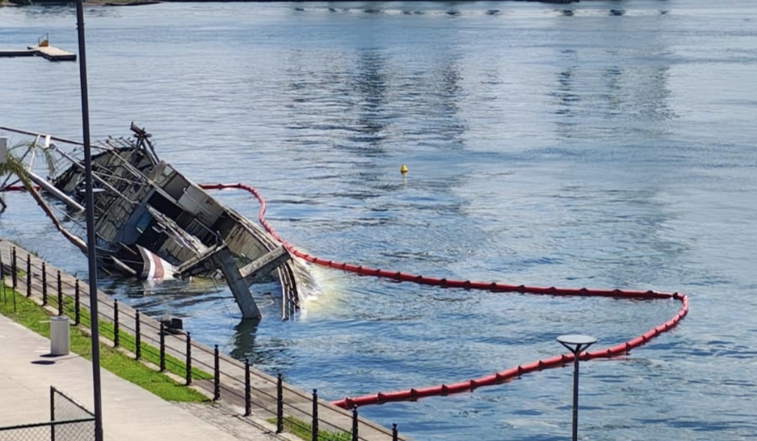 ​Impedida de acionar bombas por falta de energia, embarcação histórica que deveria virar museu aderna no Porto após sofrer com as chuvas e o descaso institucional.