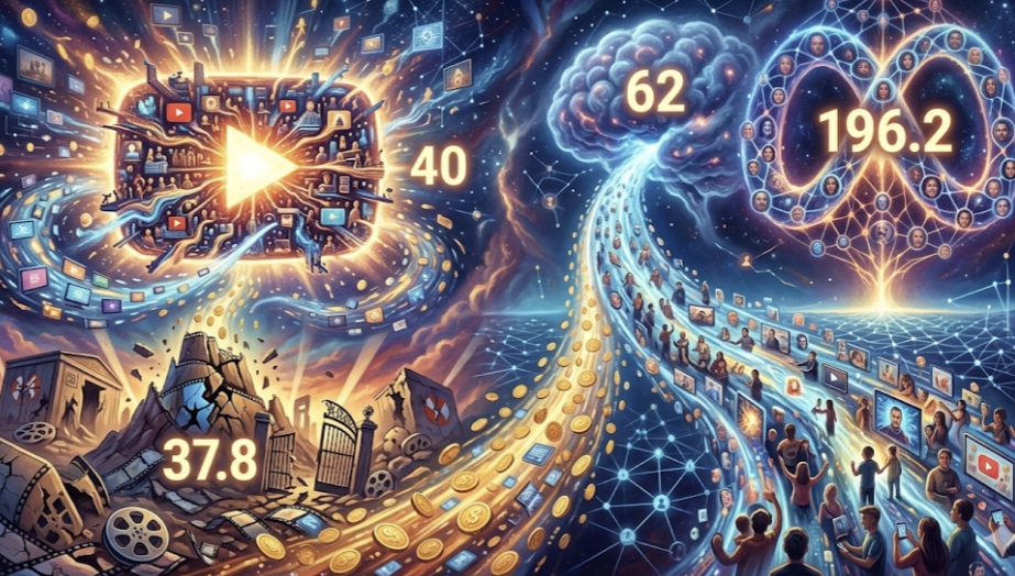 O cenário do entretenimento global registrou uma inversão histórica no fechamento de 2025. O YouTube, operando sob a lógica de plataforma e não de produtora tradicional, alcançou a marca de US$ 40 bilhões em receitas publicitárias. O desempenho financeiro isola a empresa no topo da atenção do espectador, superando, de uma só vez, o faturamento somado de anúncios das quatro maiores potências da mídia convencional: Disney, NBC, Paramount e Warner, que juntas acumularam US$ 37,8 bilhões.